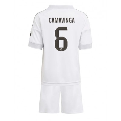 Fotballdrakt Barn Real Madrid Eduardo Camavinga #6 Hjemmedraktsett 2025-26 Kortermet (+ Korte bukser)